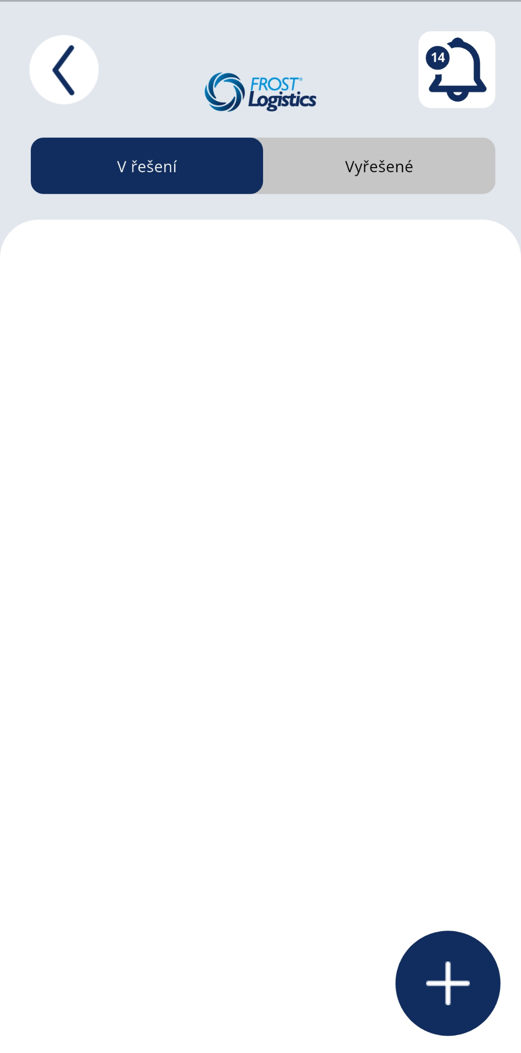 Klikněte na PLUS v pravém dolním rohu pro nahlášení nové závady.