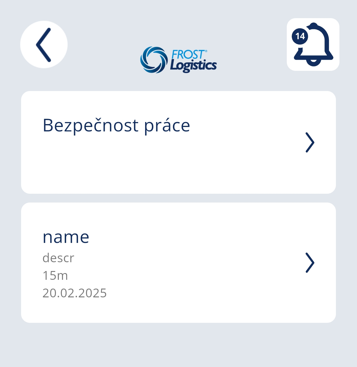 Na obrázku je seznam vám přiřazených školení, které musíte splnit. Jedno školení si kliknutím na něj vyberte.