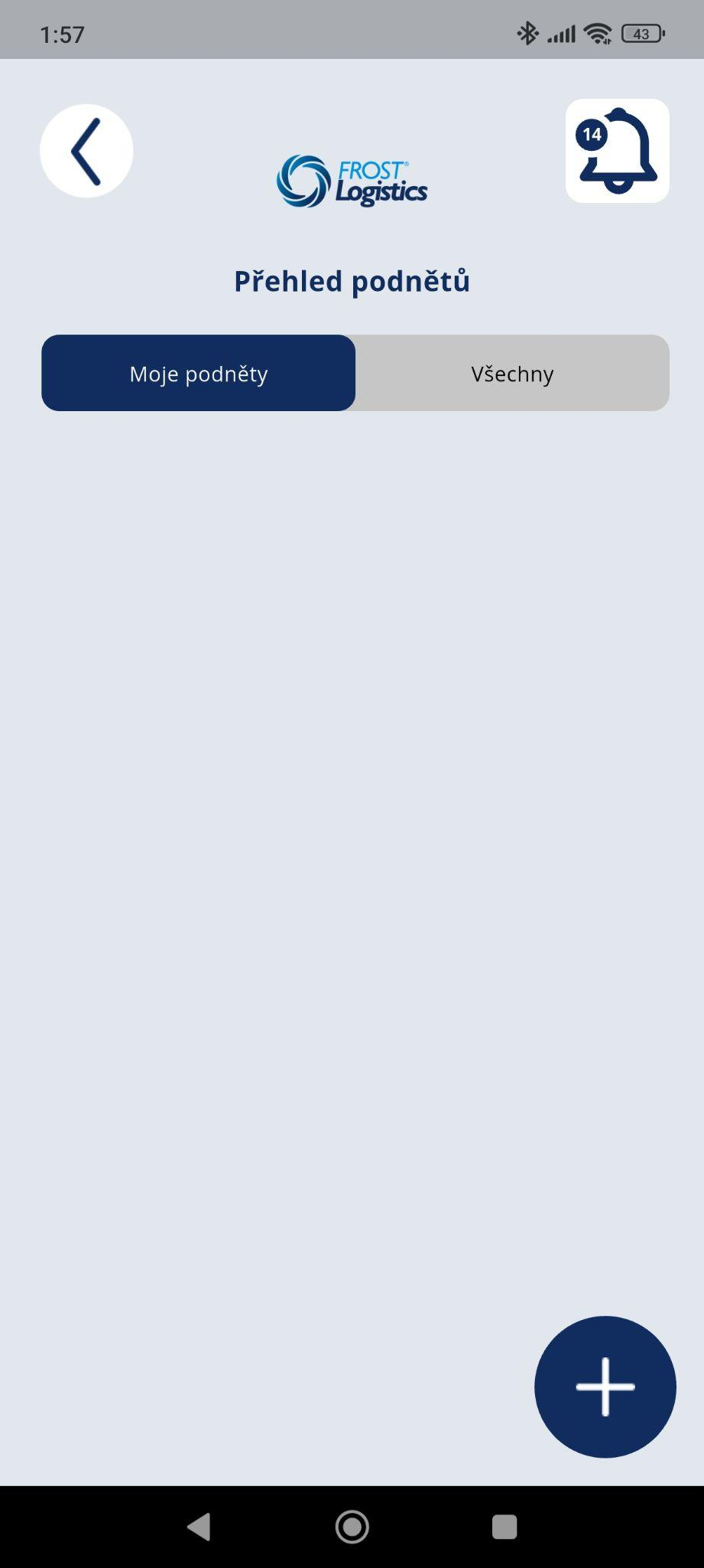 Na obrázku vidíte seznam vašich podnětů a všechny podněty. Tlačítkem PLUS můžete vytvořit nový podnět.