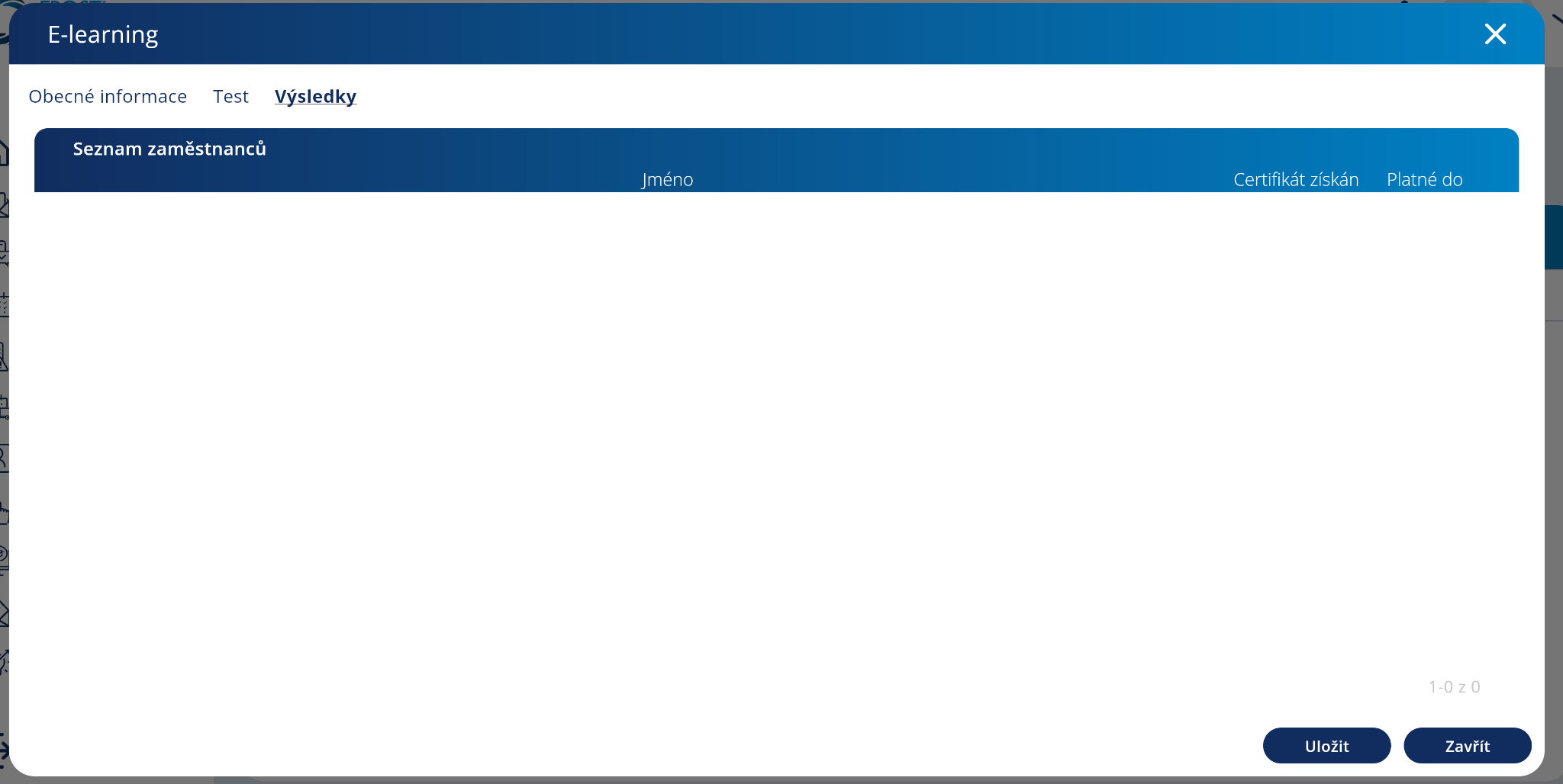 V záložce Výsledky uvidíte, kdo a s jakým výsledkem prošel školením.